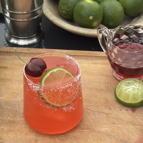 Margaritas are always a good idea, but this version brings something a little different. The Aperol adds a soft bitterness and subtle orange note that plays beautifully with the lime and Cointreau, while the cherry syrup brings a juicy, slightly sweet punch of color and flavor.