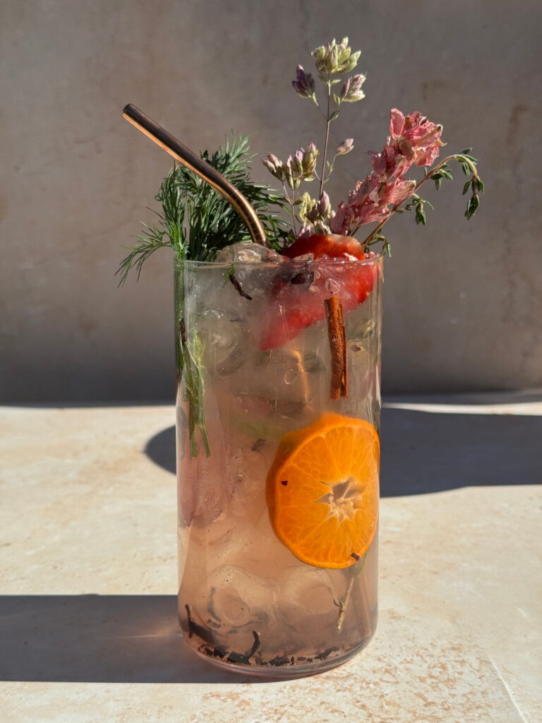 In Israel, Gazoz started as a simple soda of sparkling water + citrus + syrup. But many modern bars elevate it by adding jars of macerated fruits, herbs, and spices that you spoon into the glass.