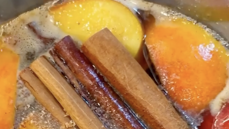 - Remove from heat, let cool, and discard cinnamon sticks.