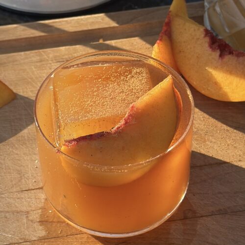 - Garnish with a peach slice, cinnamon stick, or both.