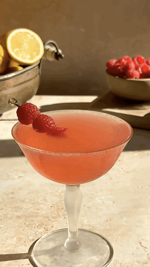 If you’re a fan of the French 75 — that effortlessly elegant blend of gin, lemon juice, and bubbles — you’re going to love this fresh, fruity riff. It’s got all the sparkle and botanical notes you’d expect, but with a seasonal pop of raspberry and the cozy warmth of ginger.