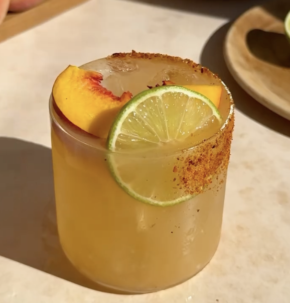 The Spicy Peach Margarita begs to be served at golden hour, poolside, or anywhere the dress code is “just a little extra.”